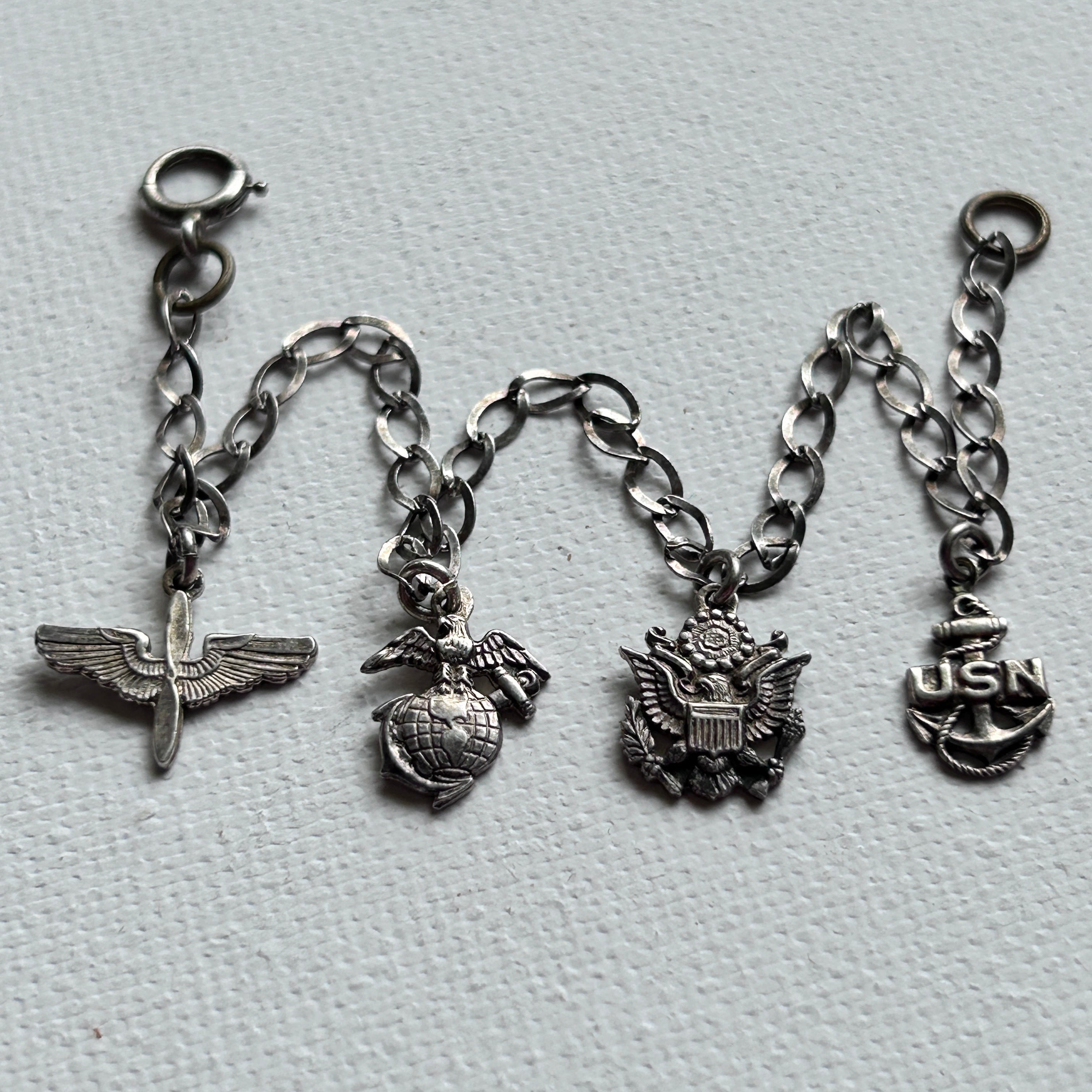 【希少】WWⅡ 40s AIR FORCE NAVY MARINE Charmブレスレット 勿忘草 Military